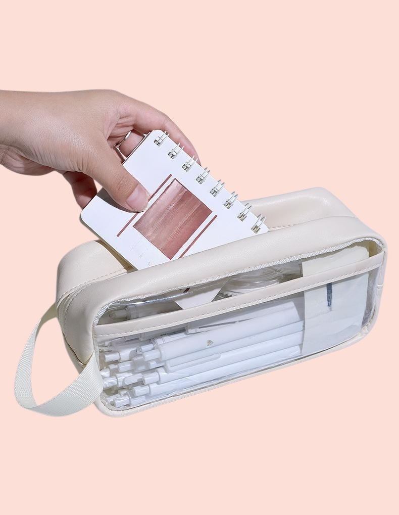色:クリームホワイト、シーソルトグレー、サクラピンク、スカイブルー、多色ランダム発送、透明ペンケースTPUベージュ、透明ペンケースTPUブラック