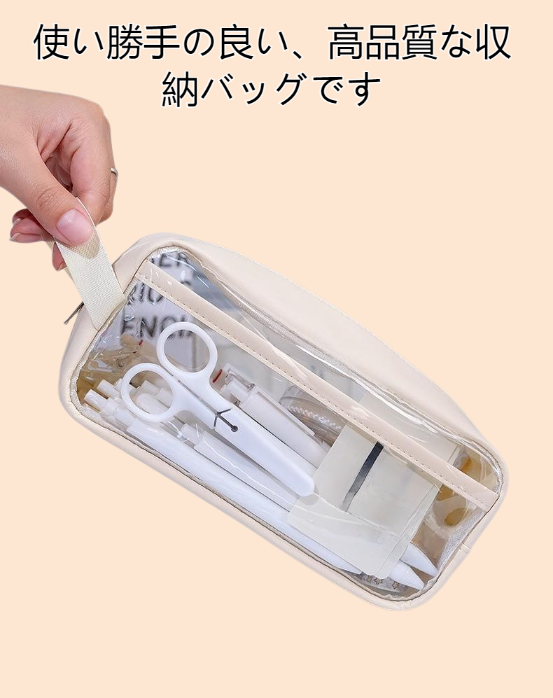 透明ペンケース風デザイン、防水素材、携帯便利。大容量で文具や小物をすっきり収納。手持ち可能、高価値の収納バッグ。
