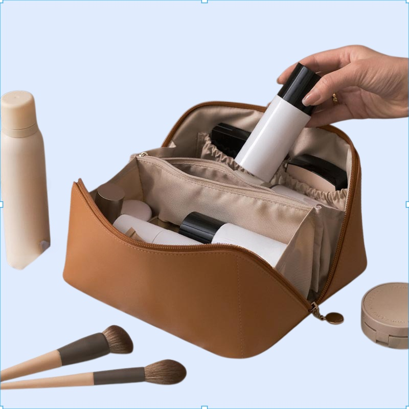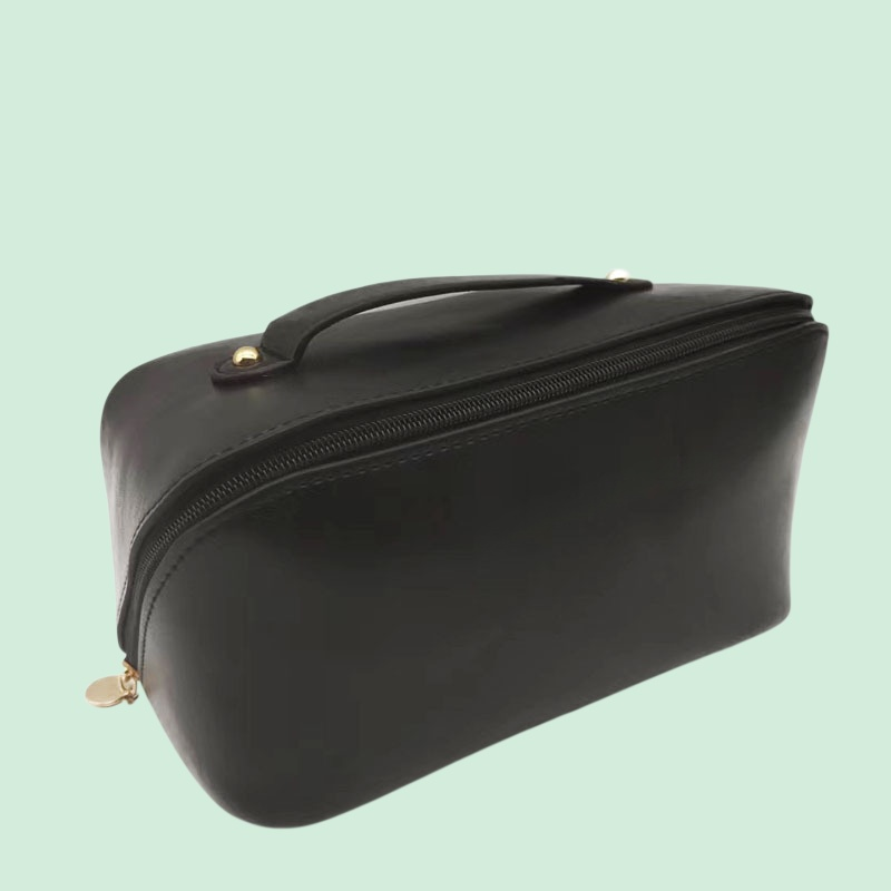 大容量のPUレザー製トイレタリーバッグ。旅行やメイクアップ用品の収納に便利。ポータブルで持ち運びやすく、耐久性も優れています。